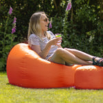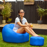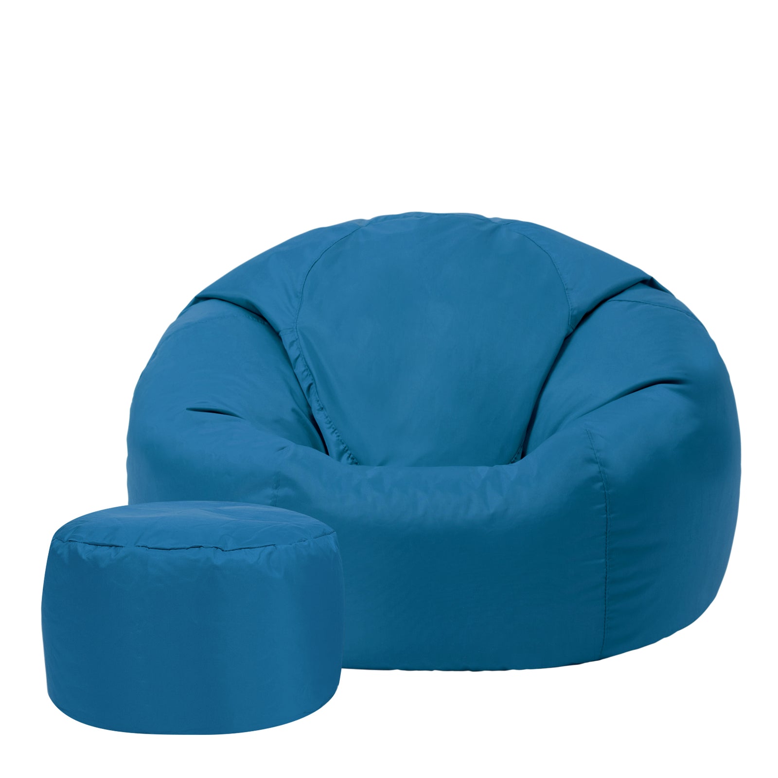 Indoor and outdoor bean bag, supportive sink-in finish, made in high quality, woven fabric, wipe-clean finish, classic rounded shape, double stitching for extra strength, double zipped for extra security, durable and water-resistant,