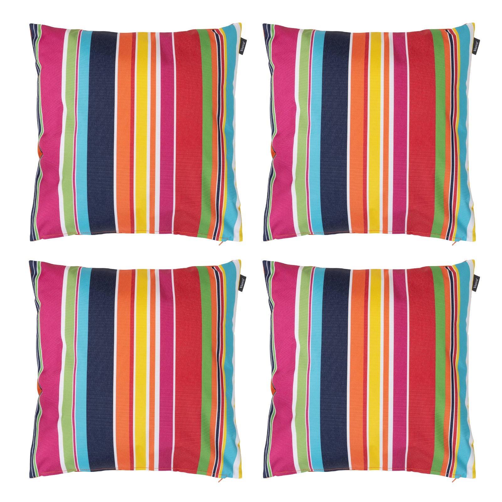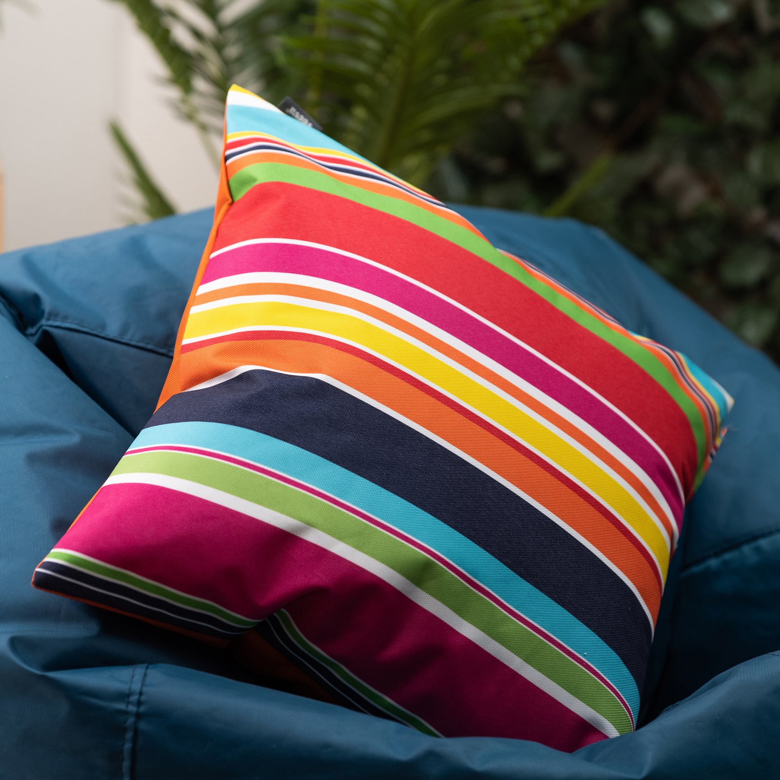 Technicolour striped print outdoor cushion (set of 4)technicolour striped print cushion (set of 4) - orange reverseinstantly uplift your indoor or outdoor dcor with this vibrant technicolour striped print cushion. Its dazzling design is a great way to refresh and renew your space. Filled with a plump hollow fibre, this cushion is perfect for adding a decorative touch to your outdoor furniture. Designed with 100 percent waterproof fabric this patterned cushion is ideal for indoor and outdoor use. Extend its life by simply wiping clean any spillages and storing them in a cool, dry place indoors - ready to bring outside when the warmer weather arrives on fresh spring and bright summer days.plain indoor and outdoor cushionpractical and on-trendbright technicolour striped designsoft and cosywipe cleanzip closurecushion cover and filling includedfibre-filled square cushionhigh quality, water-resistant fabric