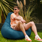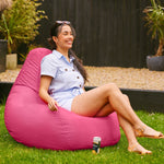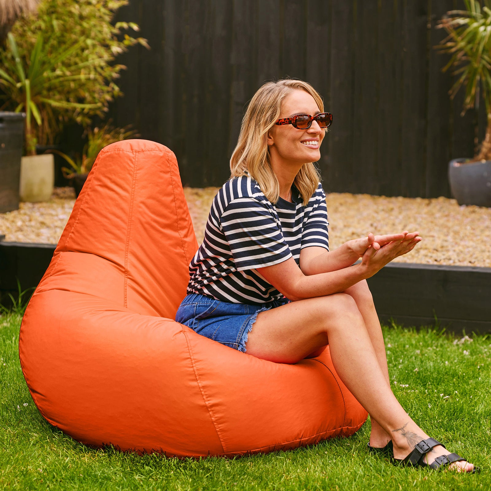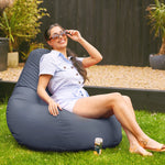 Indoor and outdoor bean bag, relaxing contemporary design, made in high quality, woven fabric, durable and water resistant, wipe-clean finish, recliner shape, double stitching for extra strength, double zipped for extra security,