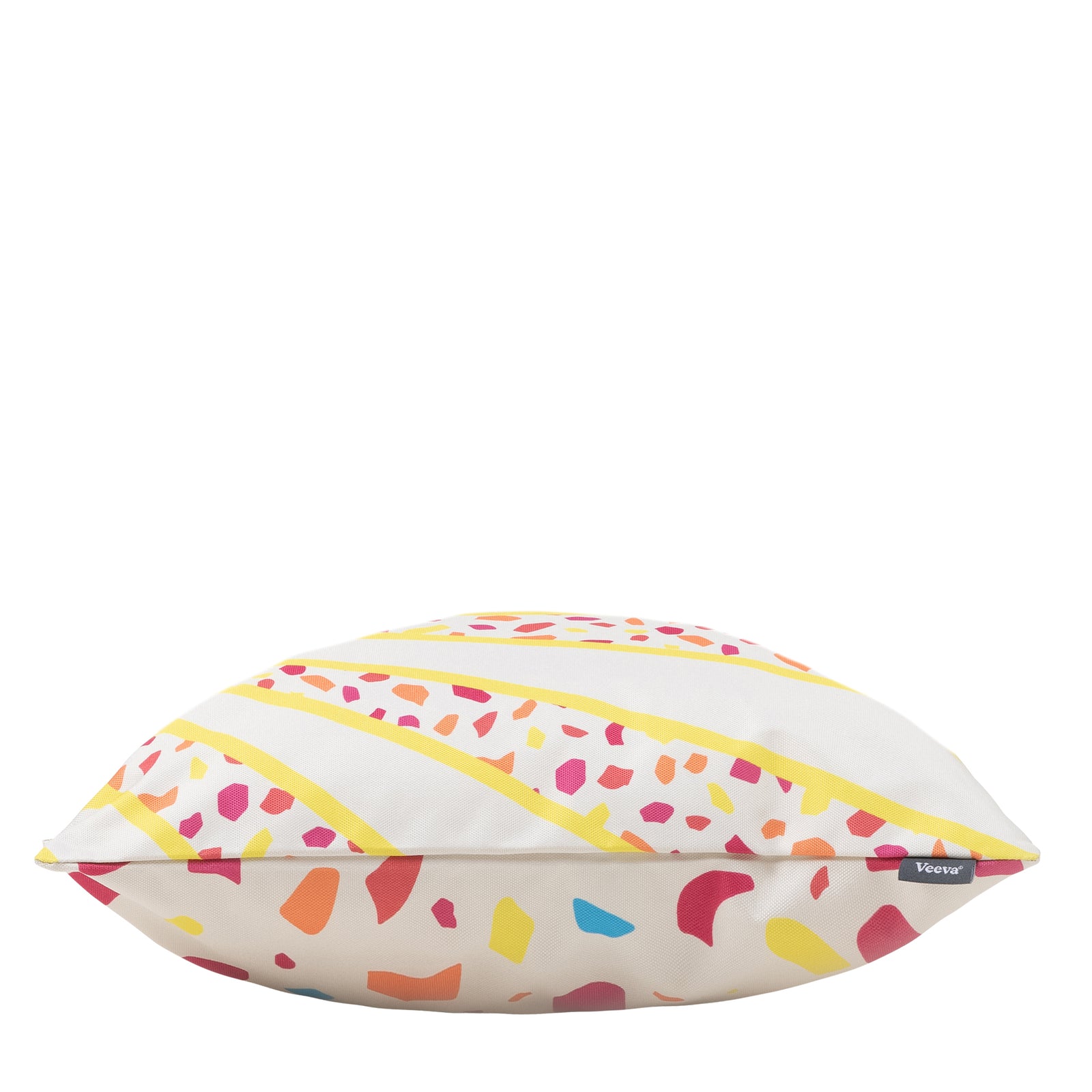 Veeva sun and terazzo outdoor cushion - reversible printveeva sun and terazzo outdoor cushioncreate a happy space to enjoy good vibes with this fun veeva sunshine cushion. The reversible design allows you to switch up your decor up with ease. great for customising the look and feel of any space, this cushion is suitable for both in and outdoor use. It is designed to withstand showers and spills with its water-resistant fabric and hidden zip closure. Complete with a highly breathable inner, these cushions are incredibly soft, shape retaining and supportive. Mix and match colours and patterns to create a sunny sanctuary that works for your space.