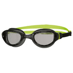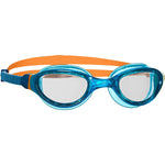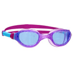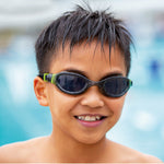 We present the phantom 2. 0 children's/kids' swimming goggles from [manufacturer]. Constructed from silicone, these goggles are suitable for indoor and outdoor aquatic activities. Featuring 180-degree panoramic vision and anti-fog coating on the curved lenses, the wearer benefits from clear sight both above and below the water's surface. The goggles' soft seal gasket and contoured facial design provide a comfortable fit. An additional benefit is uv protection for the eyes. Secured in place through an adjustable slide mechanism and split strap fastening at the rear of the head, these goggles are a high-quality choice for young swimmers.